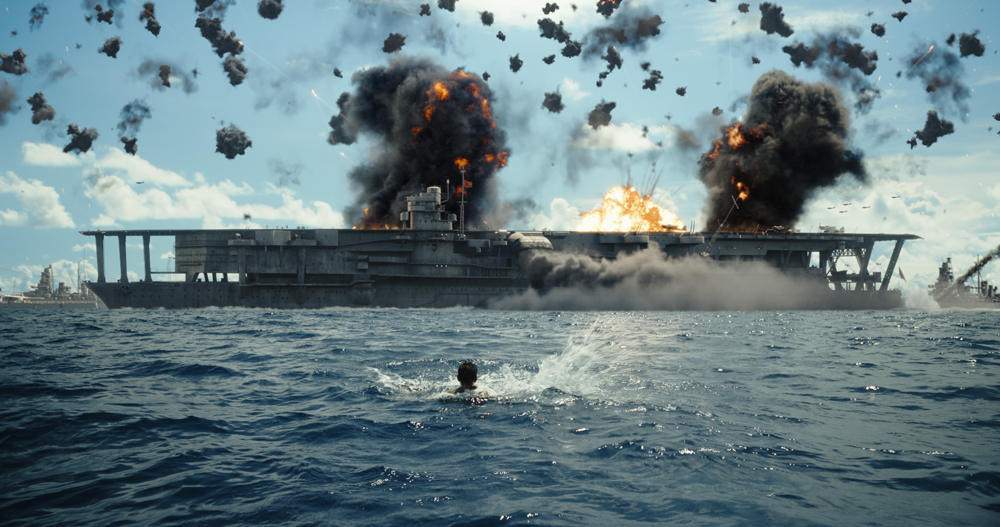 미국의 '언더독'(underdog) 정신을 바탕으로 열세에서도 승리를 거뒀다는 부분이 대사로까지 강조되기 때문인데요, 진주만 공습에 성공한 일본군은 미국에 대해 "잠자는 거인을 깨우고 결기를 불어넣었다"고 까지 말합니다. 영화에 나오는 인물들은 모두 실존 인물로 알려져 있으며 영화 엔딩 크레디트에 소개가 나옵니다. '인디펜던스 데이'(1996), '투모로우'(2004), '2012'(2009) 등을 연출한 롤랜드 에머리히 감독이 연출하고 우디 해럴슨과 애런 에크하트, 루크 에번스, 닉 조나스, '데드풀'의 에드 스크레인, '컨저링' 시리즈의 패트릭 윌슨, '곡성'으로 유명한 구니무라 준 등 화려한 출연진도 볼거리입니다.