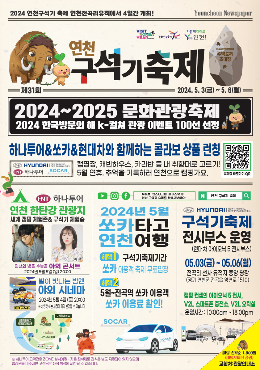 연천 구석기 축제는 한반도 최최의 인류가 살았던 연천 전곡리 유적에서 열리는 세계 최대의 선사문화축제입니다. 1978년 연천 전곡리에서 아슐리안형 주먹도끼(전기 구석기 시대를 대표하는 석기로 뛰어난 석기공작 기술을 보여준다)가 발견되면서 당시 세계 구석기 문화를 동양과 서양, 이분법으로 구분하던 모비우스의 학설을 반증하는 계기가 되었습니다. 세계 선사 문화사에서 중요한 전곡리 유적을 널리 알리고, 잘 보존하고 활용하기 위해 1993년 작은 축제로 시작하여 이제는 매년 10만명 이상이 방문하는 우리나라 대표 선사문화축제가 되었습니다. 매년 5월이 되면 연천에 세계의 선사문화가 다 모인입니다. 현대 문명을 벗어나 자연을 탐구하며 살았던 인류의 지혜를 엿볼 수 있는 특별한 체험 축제에서 특별한 감동과 즐거움을 느낄 수 있습니다.