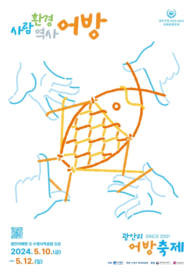 광안리어방축제는 전통어촌의 민속문화를 소재로 한 축제로, 조선시대 수군과 어민의 어업 공동작업체인 '어방(漁坊)'을 소재로 하고 있습니다. 축제 기간에는 옛 수군병영과 어촌마을을 재현한 민속마을에서 20여 가지의 전시 및 체험프로그램을 즐길 수 있고 수군, 주모, 어민, 기생 등 다양한 인물들이 마을을 돌아다닙니다. 조선시대 부산지역의 수군대장인 경상좌수사의 행렬을 재현하고, 어방을 소재로 한 창작뮤지컬을 선보입니다. 이밖에도 맨손으로 활어잡기, 한복체험, 아이들을 위한 그물낚시 체험 등 다양한 체험프로그램이 준비되어 있으며 화려한 계-폐막식과 문화공연이 펼쳐집니다.